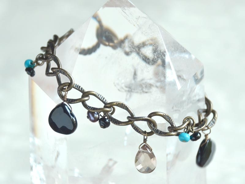 オニキス ターコイズ スモーキークォーツ 淡水パール ブレスレット