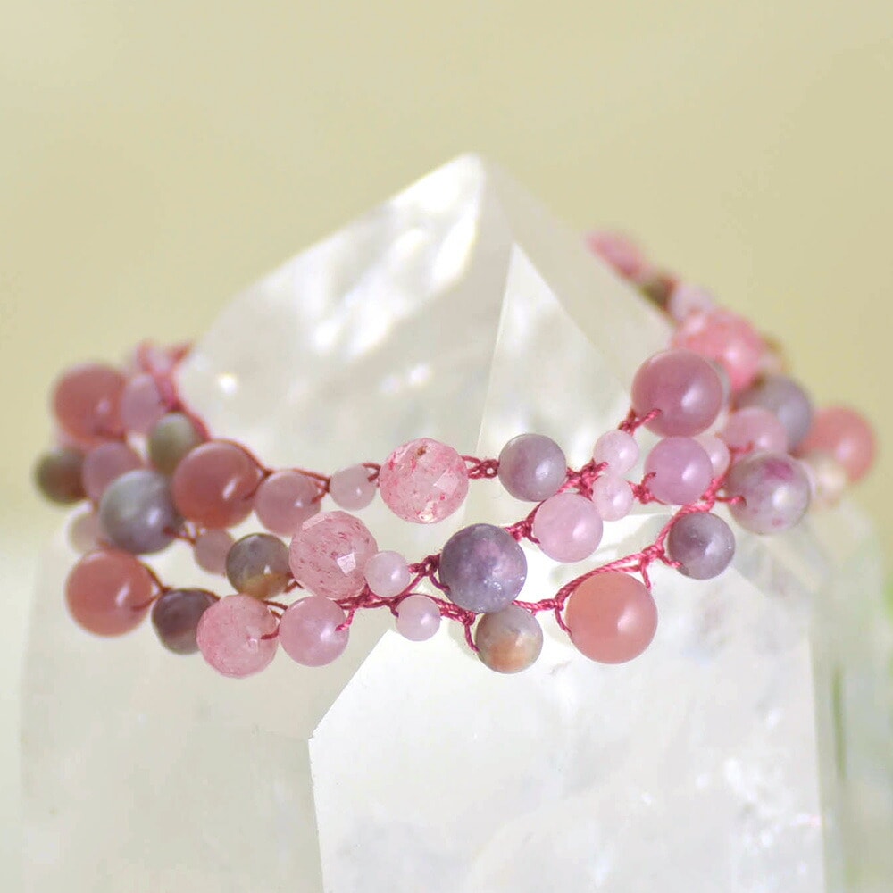 レピドライト ストロベリー クォーツ 3連ニットブレスレット