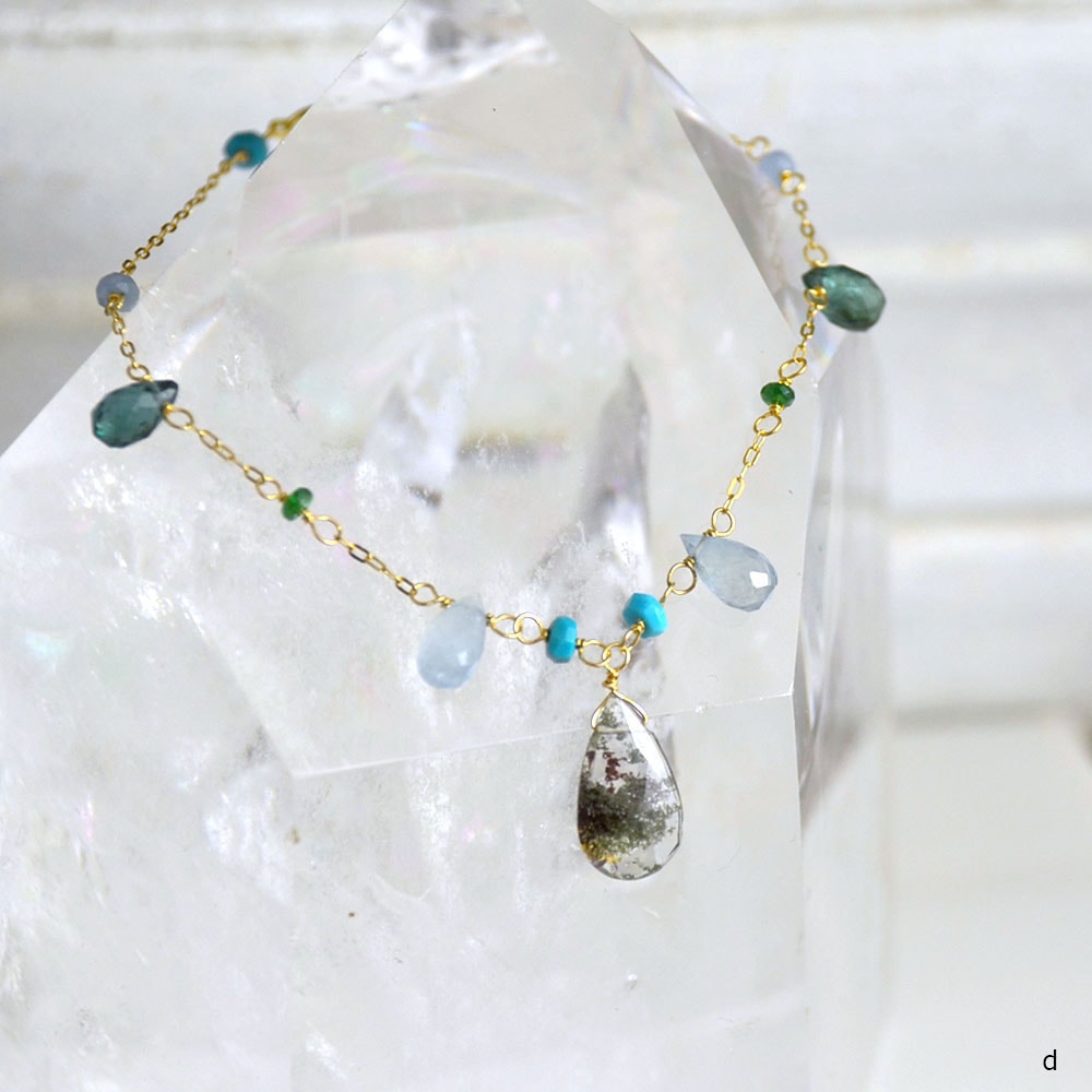 K18 グリーンルチルクォーツ グリーンアパタイト アクアマリン ターコイズ フリンジブレスレット